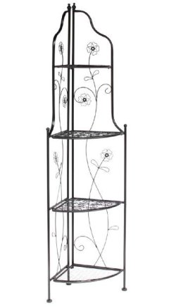輸入家具 コーナーラック シェルフ アイアン 4段 ホワイト 白 プランタースタンド フラワー アンティーク風 シャビーシック 197001 直輸入 リビングスタジオ 送料無料 [007-esn-197001]