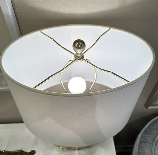 やわらかな印象のホワイトファブリックシェードが光を穏やかに拡散し、空間を優しく照らします。