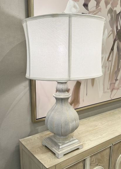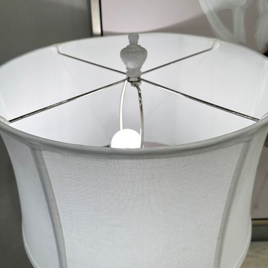 やわらかな光とエレガントな佇まいが魅力のシャビーシックなテーブルランプ。