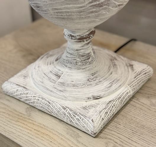 ウッド調のベースは、まるで長年使い込まれたようなアンティーク仕上げで、クラシックな壺型フォルムが空間にやさしい存在感を添えます。