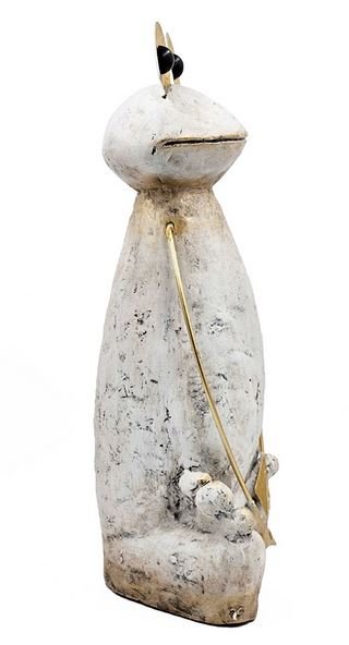 思わず笑顔になるユニークな表情が魅力のカエルのオブジェ。
