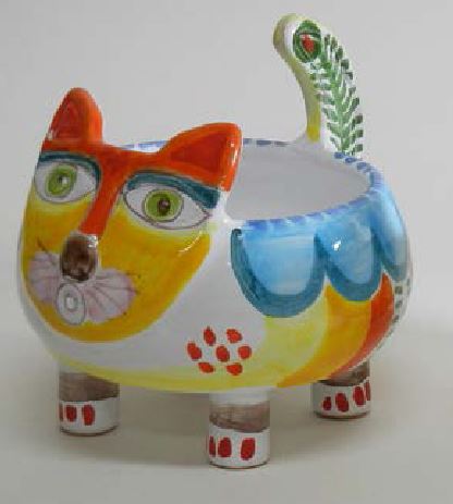 イタリア製 輸入雑貨 シチリア 陶器 オブジェ 置物 小物入れ ポット 手描き ネコ ねこ 猫 デシモーネ デシモネ desimone ハンドペイント 207AB 送料無料
