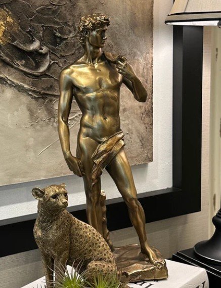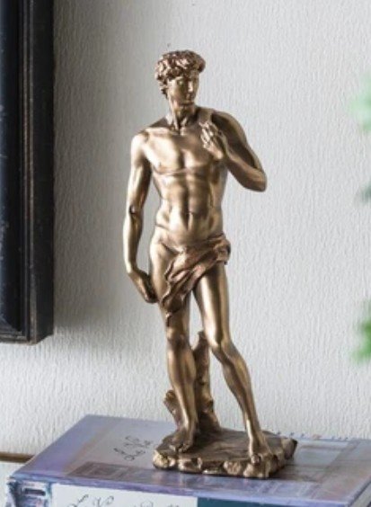 ミケランジェロの代表作「ダビデ像」を再現したブロンズ風のデコレーションオブジェ。
