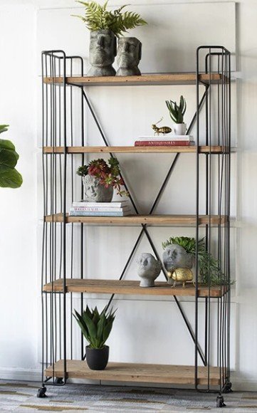 輸入家具 シェルフ 飾り棚 本棚 アイアン ウッド シャビー ブックシェルフ プランターラック AN-43157 送料無料 直輸入 リビングスタジオ [003-cot-AN-43157]