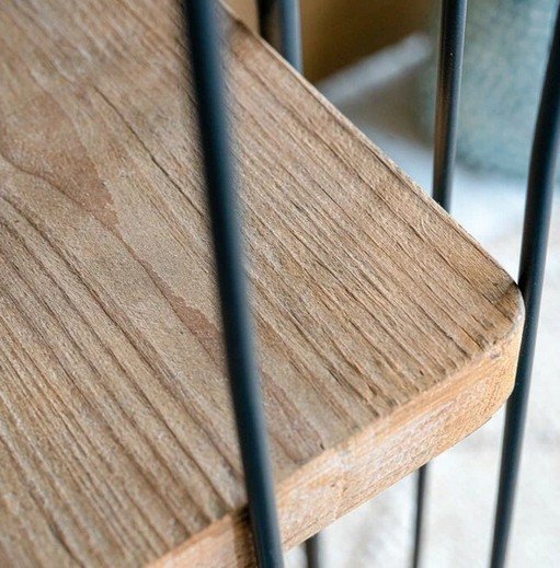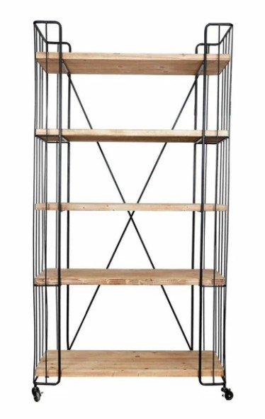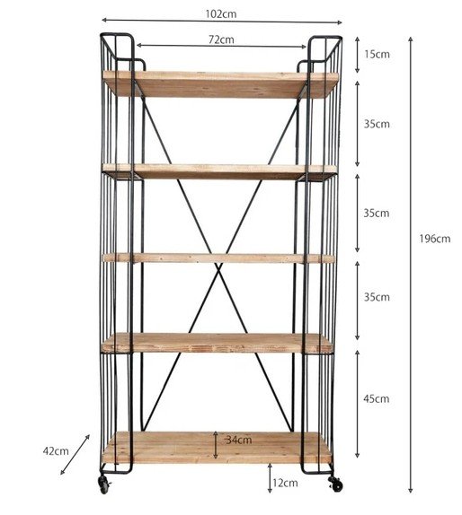 木×ブラックフレームのインダストリアルなブックシェルフ。