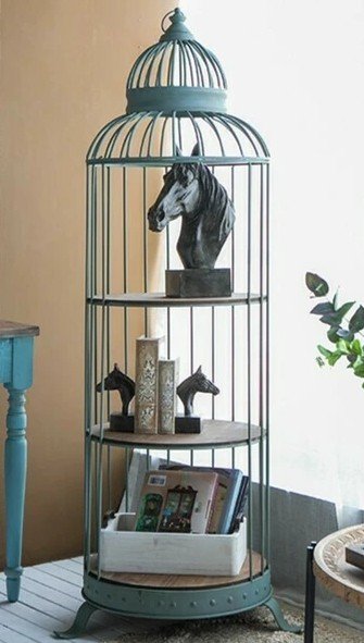 存在感抜群なバードゲージモチーフのオープンシェルフ。