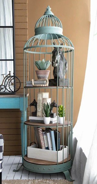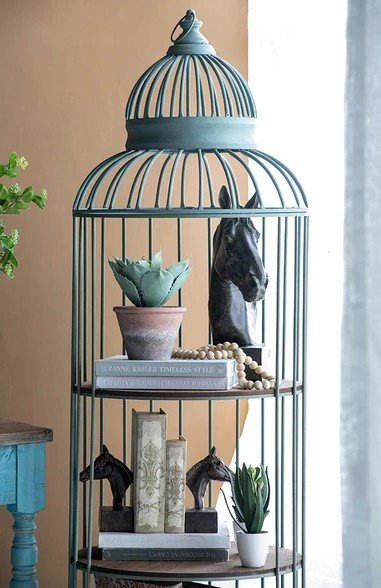 輸入家具 シェルフ 飾り棚 バードケージ アイアン シャビー ブックシェルフ プランターラック AN-47489 送料無料 直輸入 リビングスタジオ [003-cot-AN-47489]