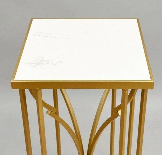 輸入家具 サイドテーブル 花台 人工大理石天板 ゴールド モダン クラシック アンティーク風 FM-429-1 H87cm 送料無料 直輸入 リビングスタジオ [007-cot-FM-429-1]