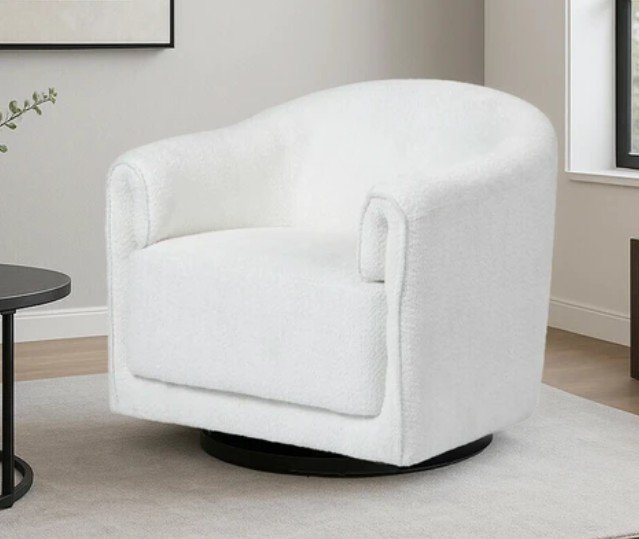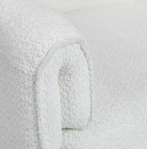 ふんわりとしたホワイトのファブリックが印象的なラウンジチェア。