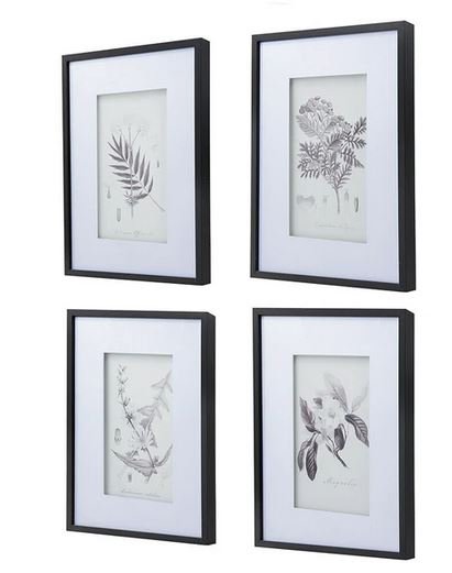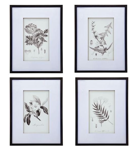 輸入雑貨 額絵 植物柄 アートフレーム 4枚セット ボタニカルアート ナチュラル デッサン 鉛筆 -cot- AN-43782 送料無料 直輸入 リビングスタジオ [014-wat-AN-43782]