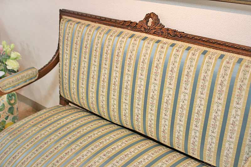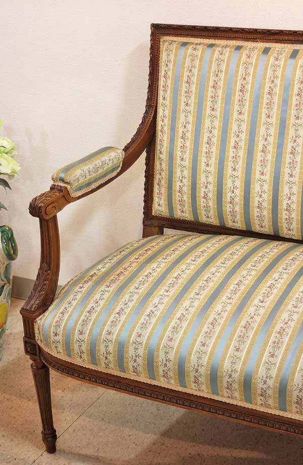 【謝恩セール特価】輸入家具 ソファ フランス アンティーク ラブソファ 彫刻 クラシック ビンテージ 506 送料無料 リビングスタジオ [002-ant-506]